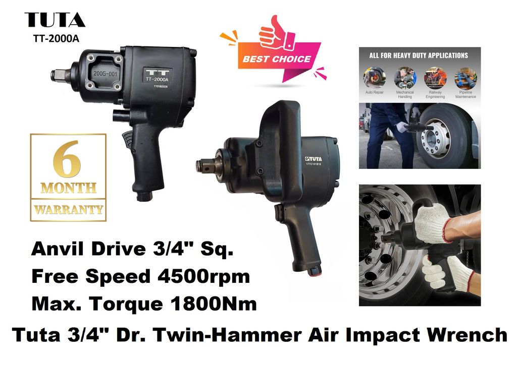 Tuta TT-2000A Twin Hammer 3/4-inch Dr. Air Impact Wrench 1800Nm..
