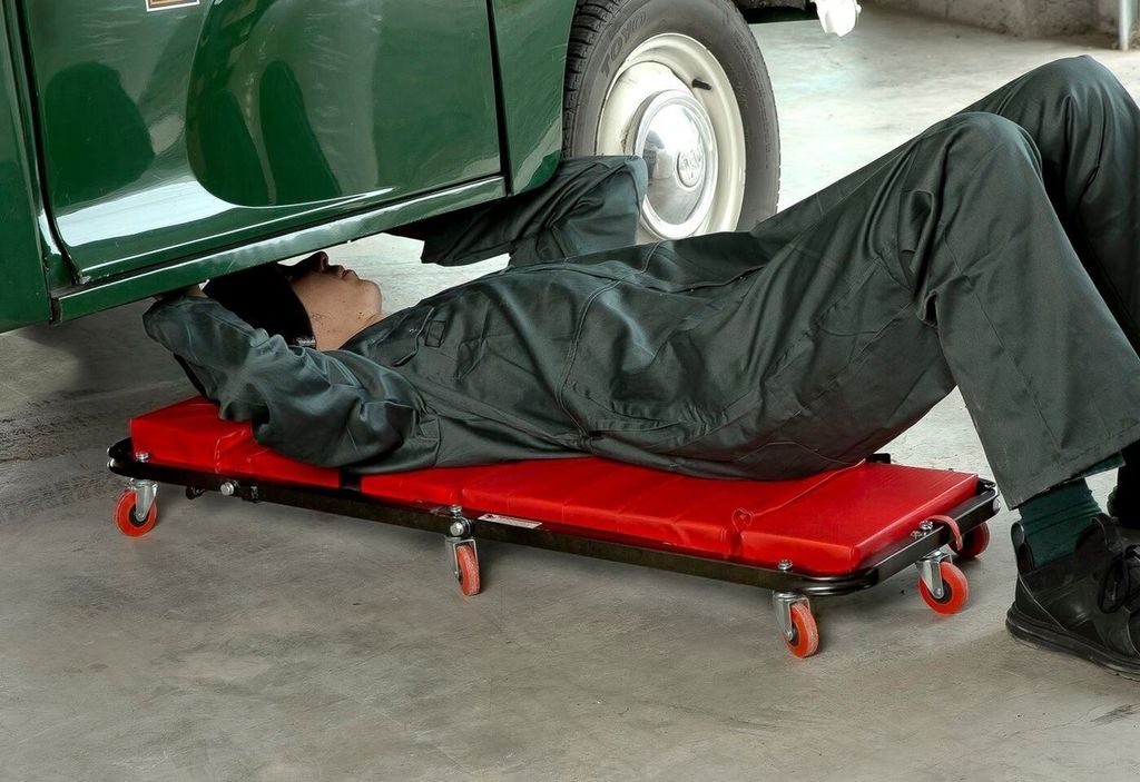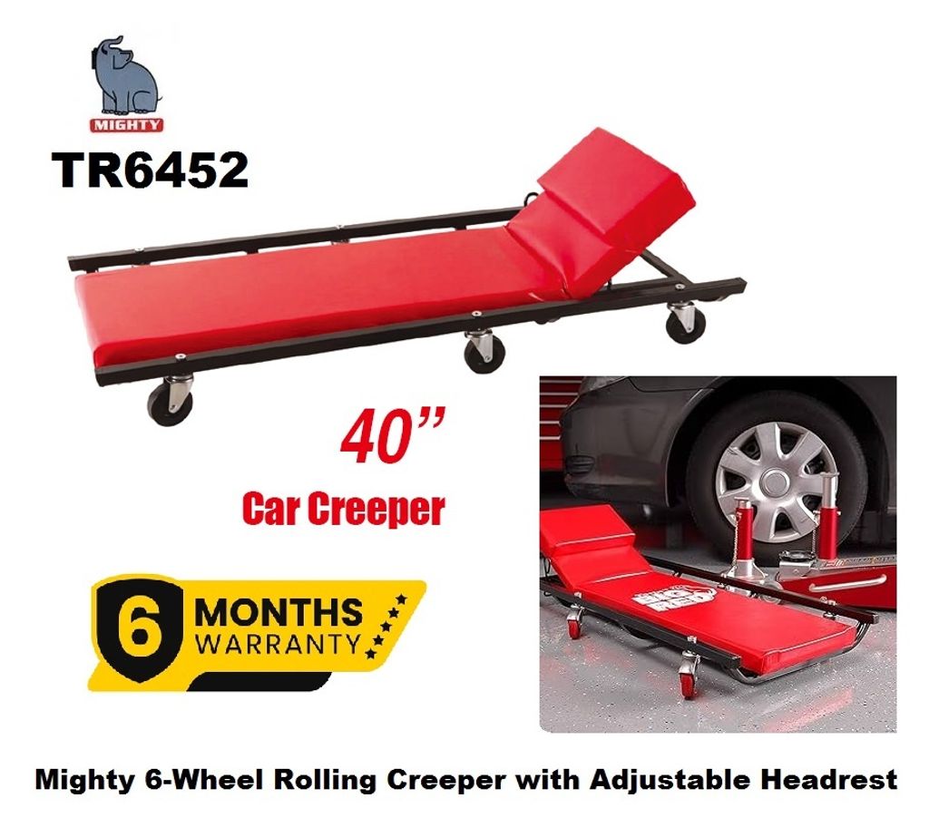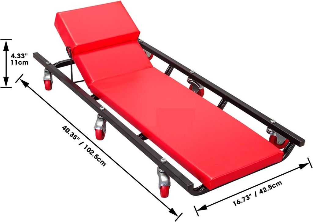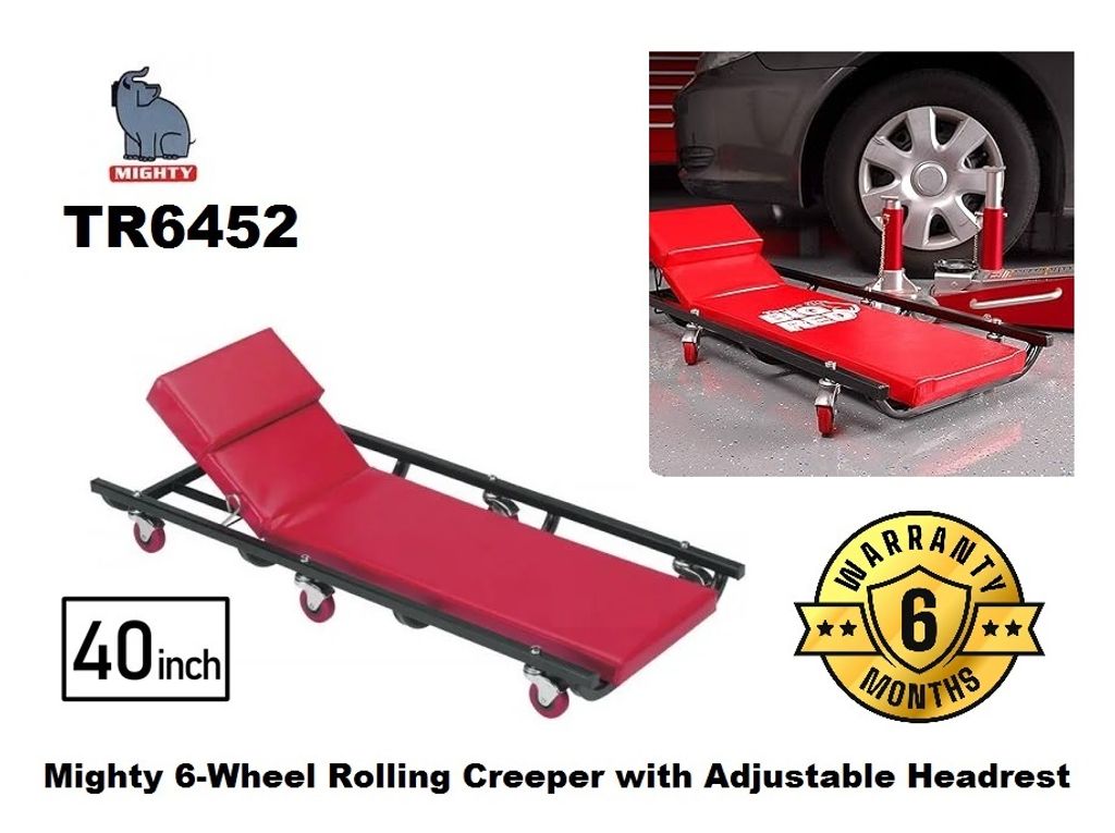 The Mighty 40" 6-Wheel Steel Creeper features a thick vinyl pad and a backrest lift for added comfort during use. It has a heavy-duty steel frame to help ensure strength and comes with 6 casters for mobility.This creeper is sturdy and easy to maneuver with six 2.5" swivel casters.