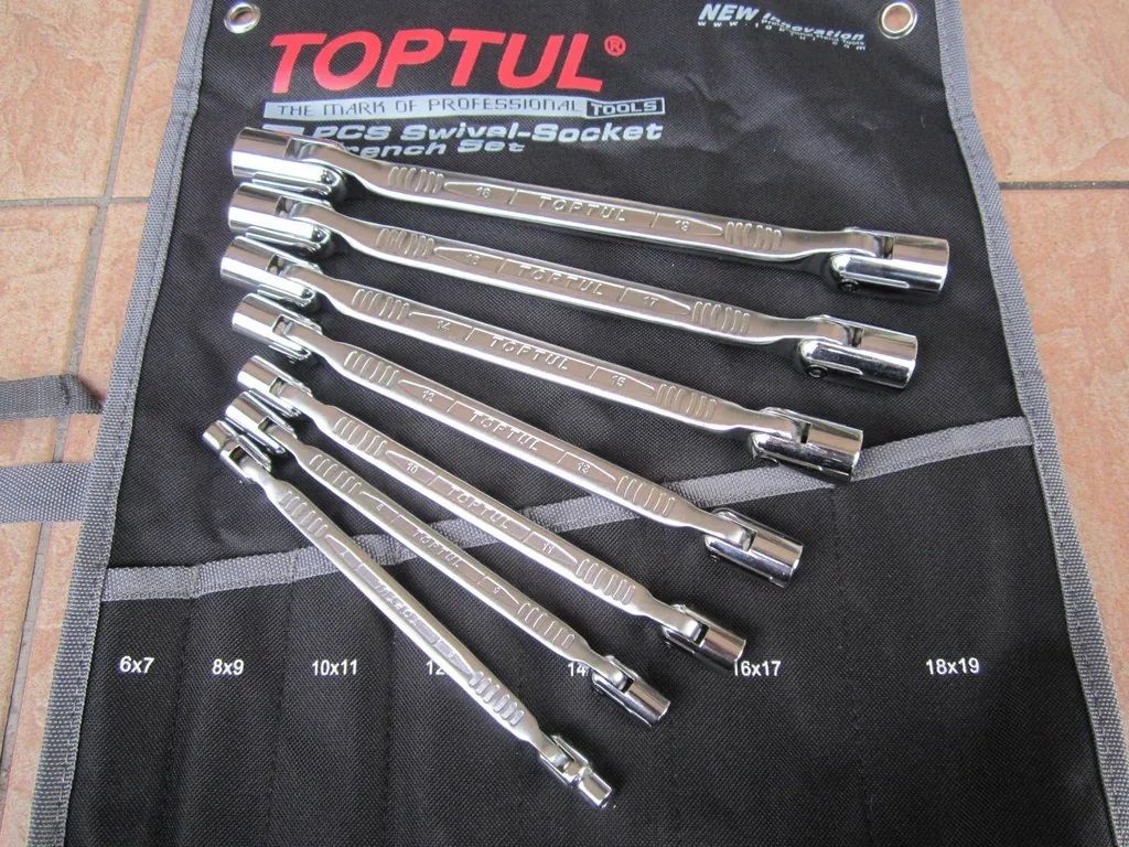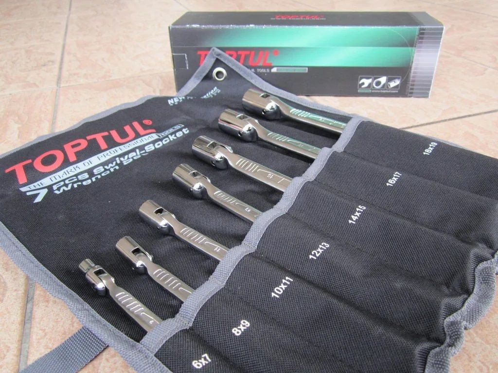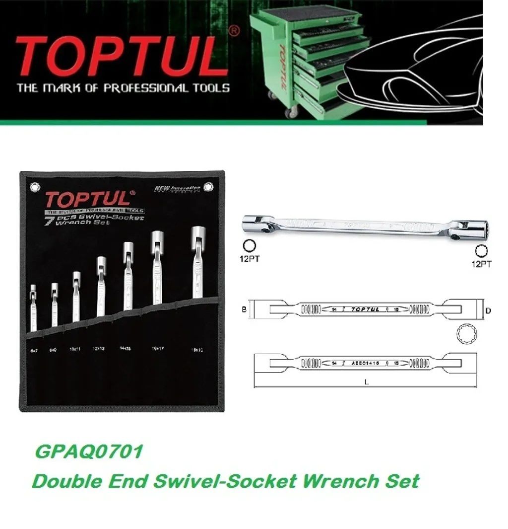 Toptul GPAQ0701 (6-19mm) Double Swivel Socket Wrench 7pcs- Pouch Bag..