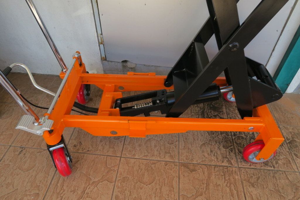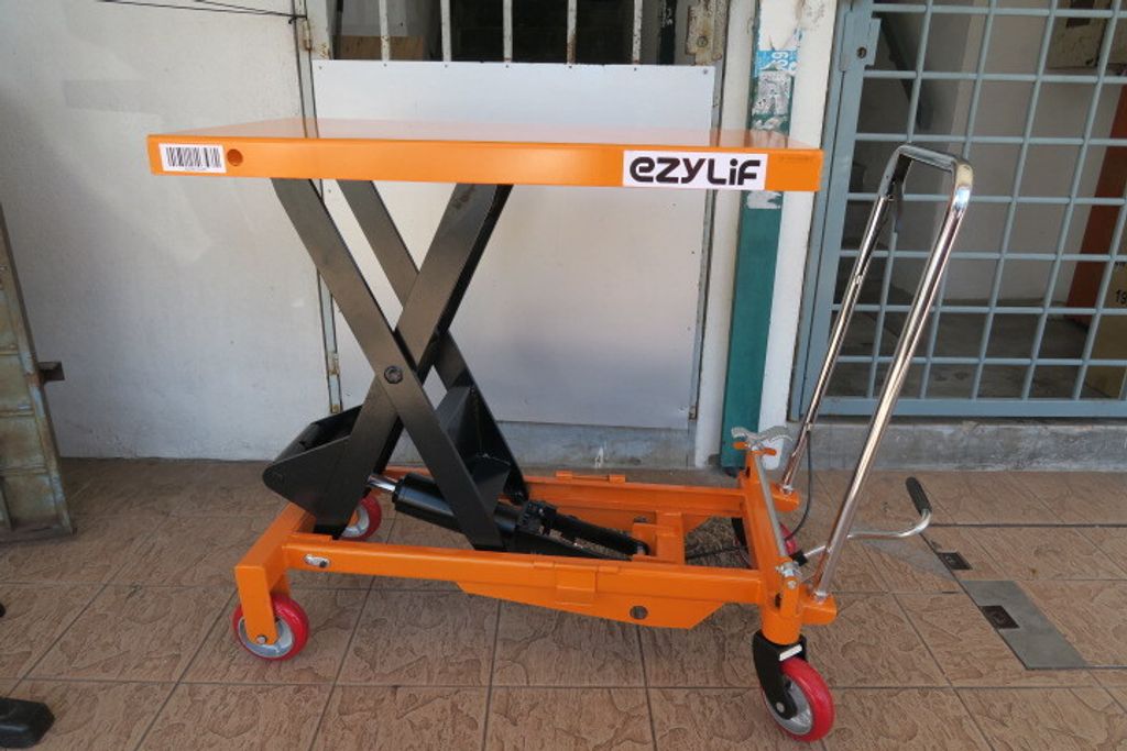 The Ezylif scissor lift table is essentially a 4-wheel hand trolley where the platform raises and lowers with the use of a hydraulically powered scissor mechanism. This scissor table lift has a multitude of uses in workshops, warehouses and despatch departments. Each table lifter is fitted with lockable castors and is operated with a foot controlled hydraulic pump in order to get what is on the table to a comfortable working height.