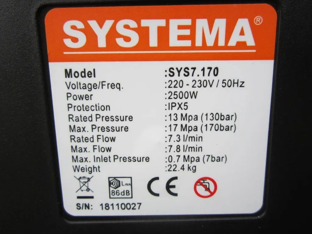 The all new Systema electric pressure washer is equipped with all of the features an eco friendly consumer could want. The Systema pressure washer operates at up to 150 bar, all while using 80% less water than a traditional garden hose would use to do the same job. It's the ideal consumer level pressure washer for cleaning cars, trucks, decks, fences, patios or any other job a property owner needs done.