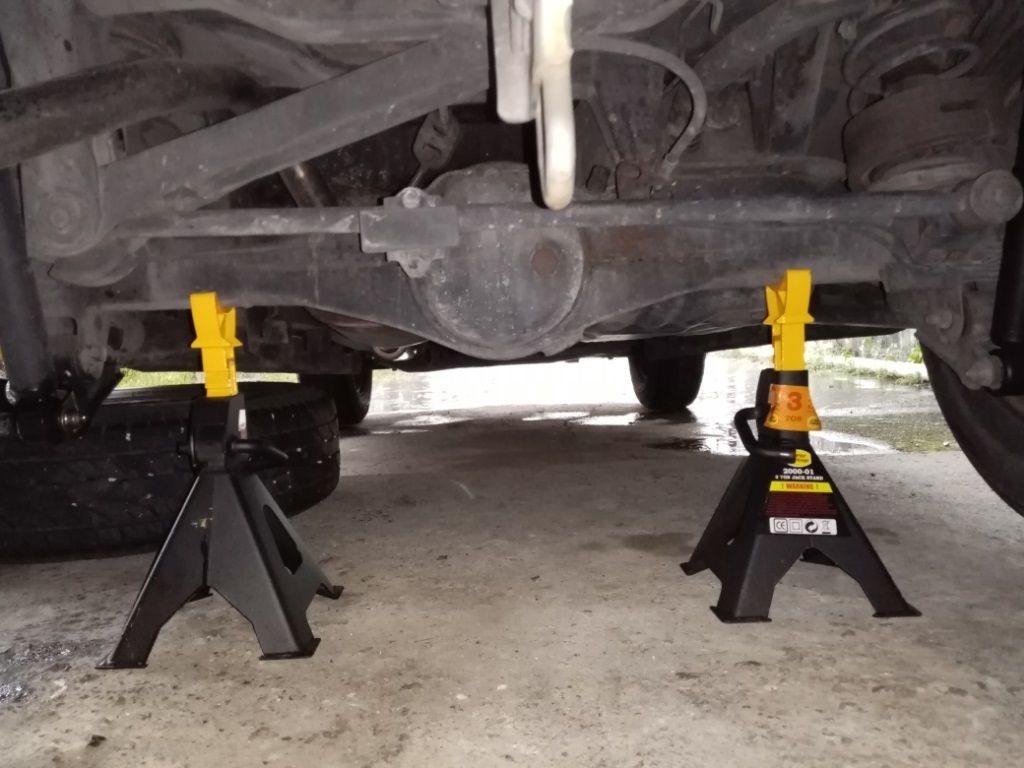 The height-adjustable Pit Stop jack stand with rubberised handles ensures non-slip working on the raised vehicle.