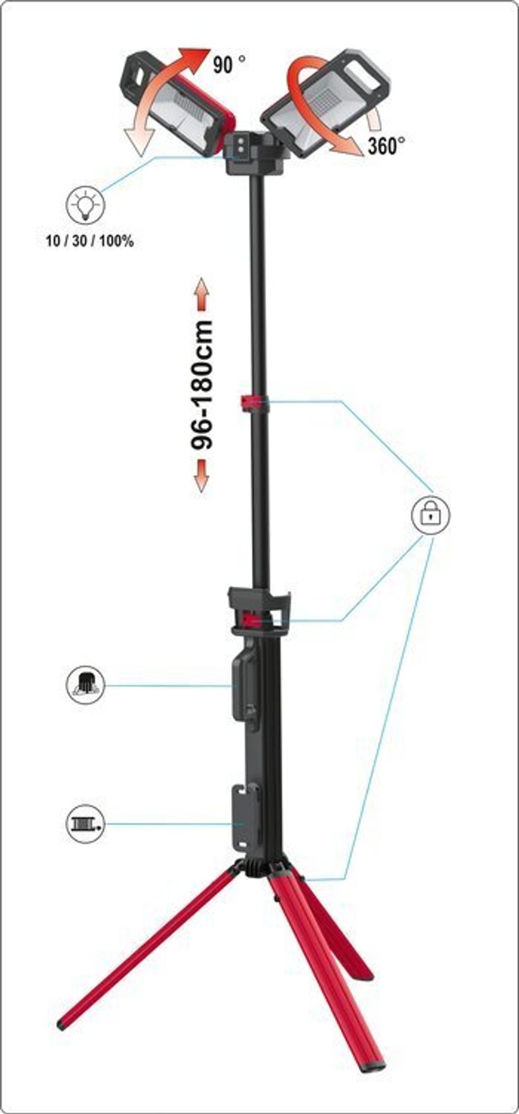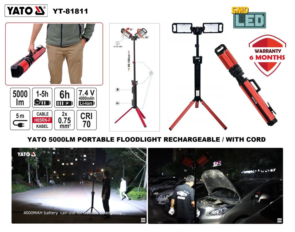 Yato SMD LED 5,000lm Portable Stand Floodlight, Corded/Rechargeable