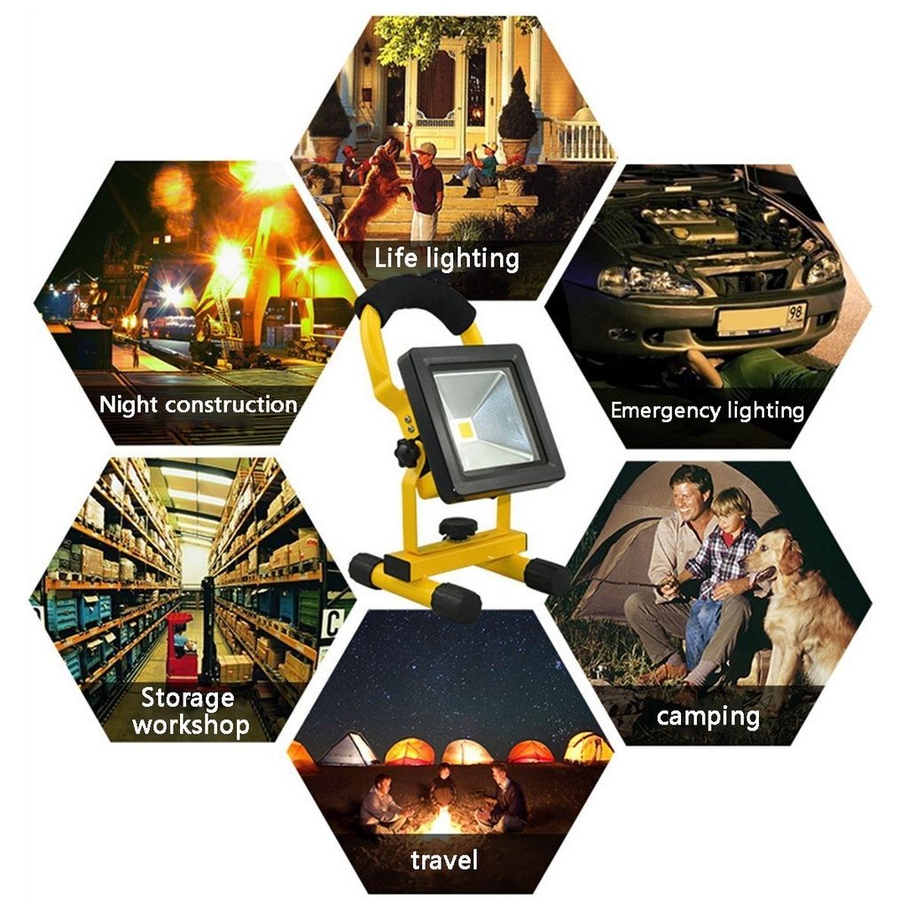 The 50W portable floodlight is an ideal choice as a work light due to its brightness and rechargeable features which allows them work for prolonged hours once charged in full.