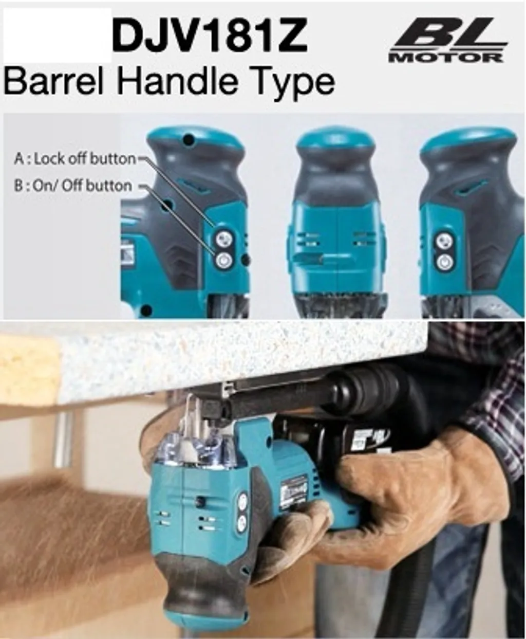 Models DJV181 have been developed as the first barrel handle type cordless jig saw powered by Li-ion batteries.