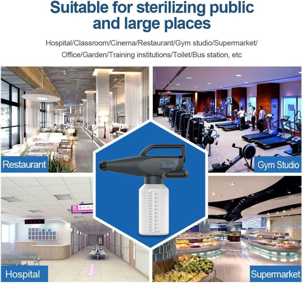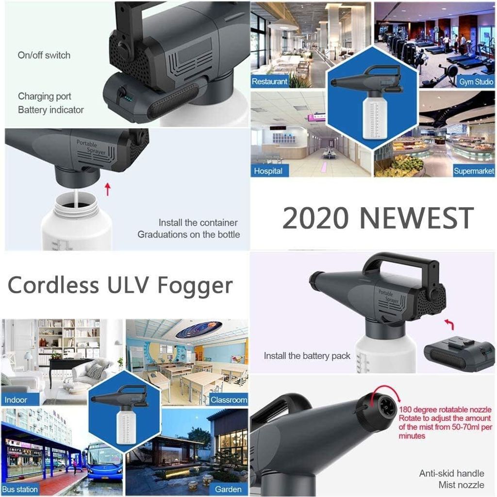 • It is portable and can create very fine water fog which is perfect for disease prevention for home, garden, indoors & outdoors, public area, hospital, school, etc.