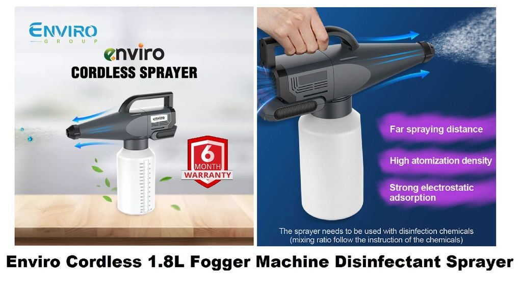 The ENVIRO Cordless Disinfectant Sprayer is a fully portable, fast-acting, hand-held, point and spray misting disinfection system. A comprehensive and effective solution that combats harmful microbes for every home and business. Secure your facility with this revolutionary disinfection machine.