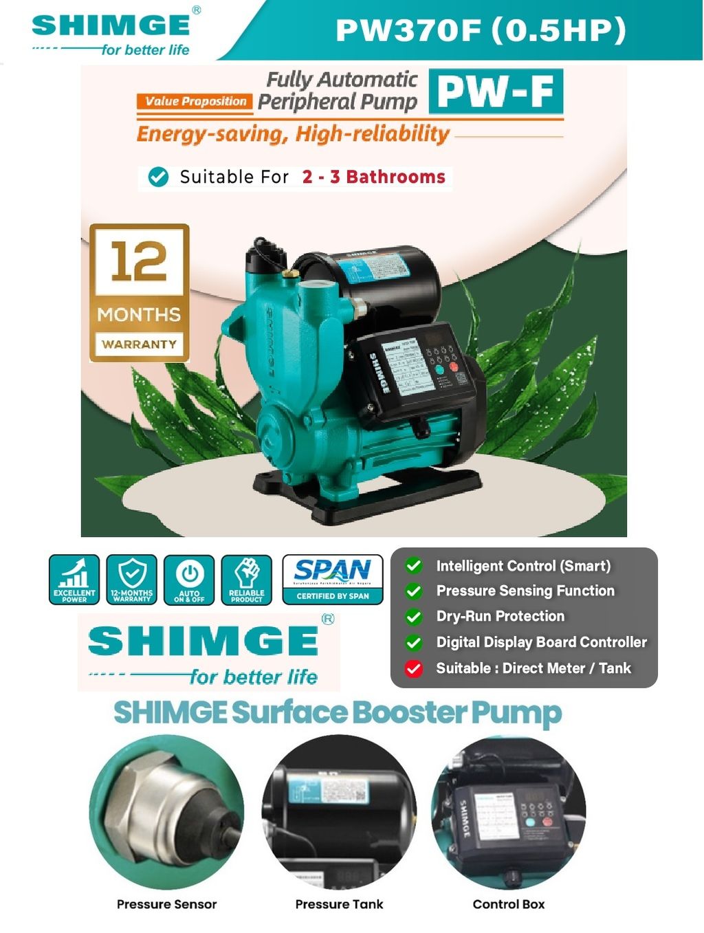 Shimge PW 370W / 0.5Hp PC-intelligent Self-Priming Water Pump..