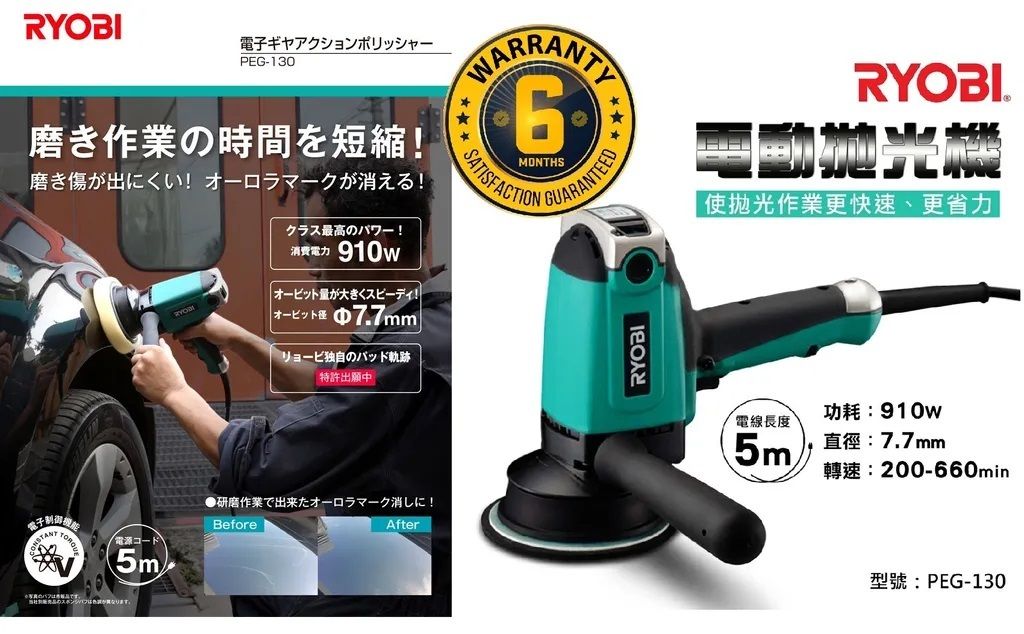 Ryobi PEG-130 (910watt) Electronic Speed Dual Action Polisher 125mm / 5-inch