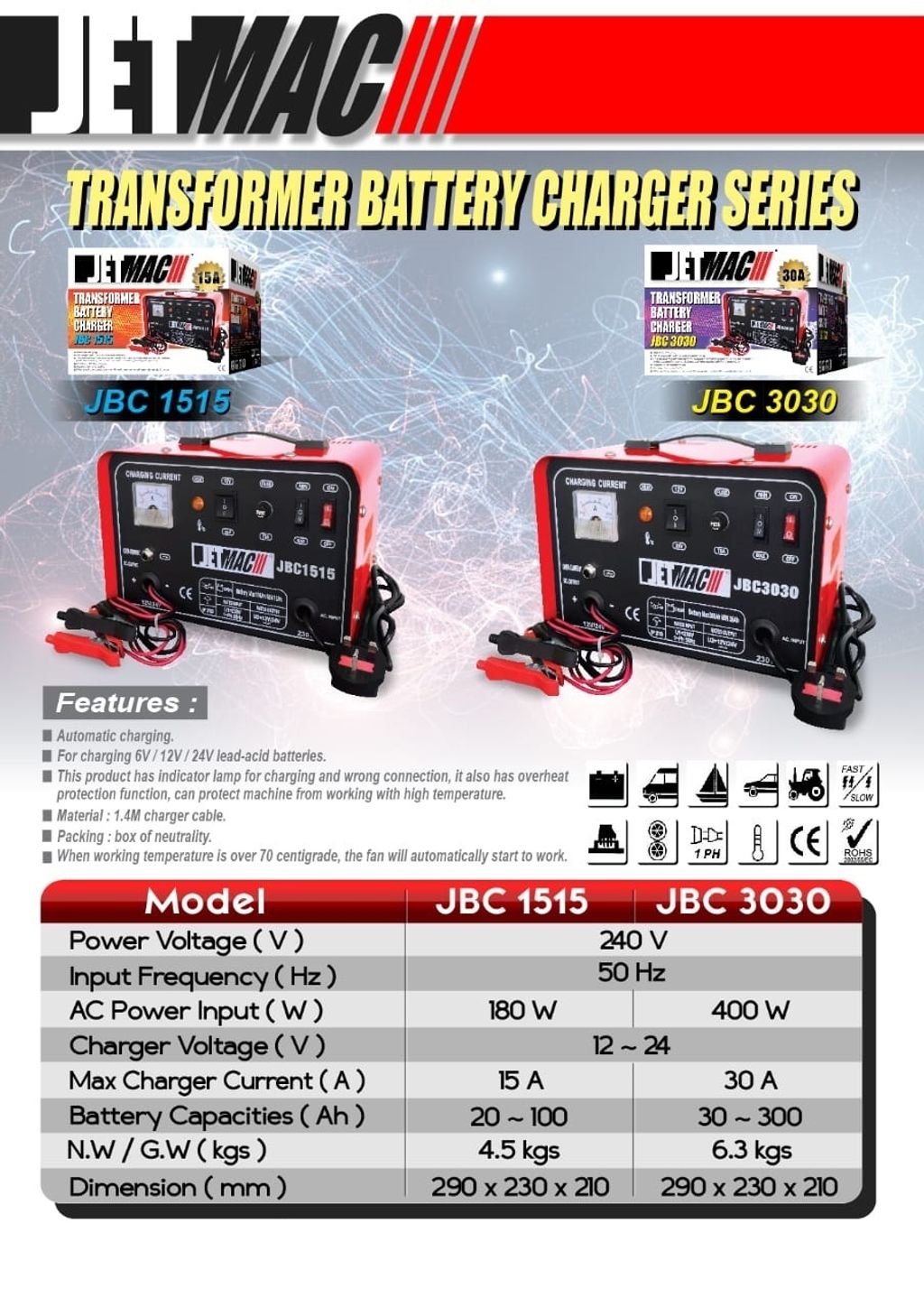 Jetmac JBC1515 (12V~24V) Transformer Type Battery Charger 15Amp..