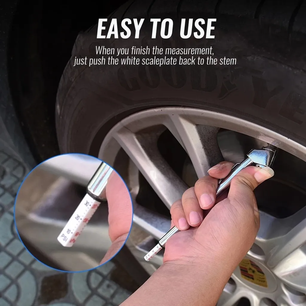 .This tire pressure gauge measures truck or car tire pressure from 10 to 120 PSI and can be used to measure air pressure on other items such as bike tires or camper tires