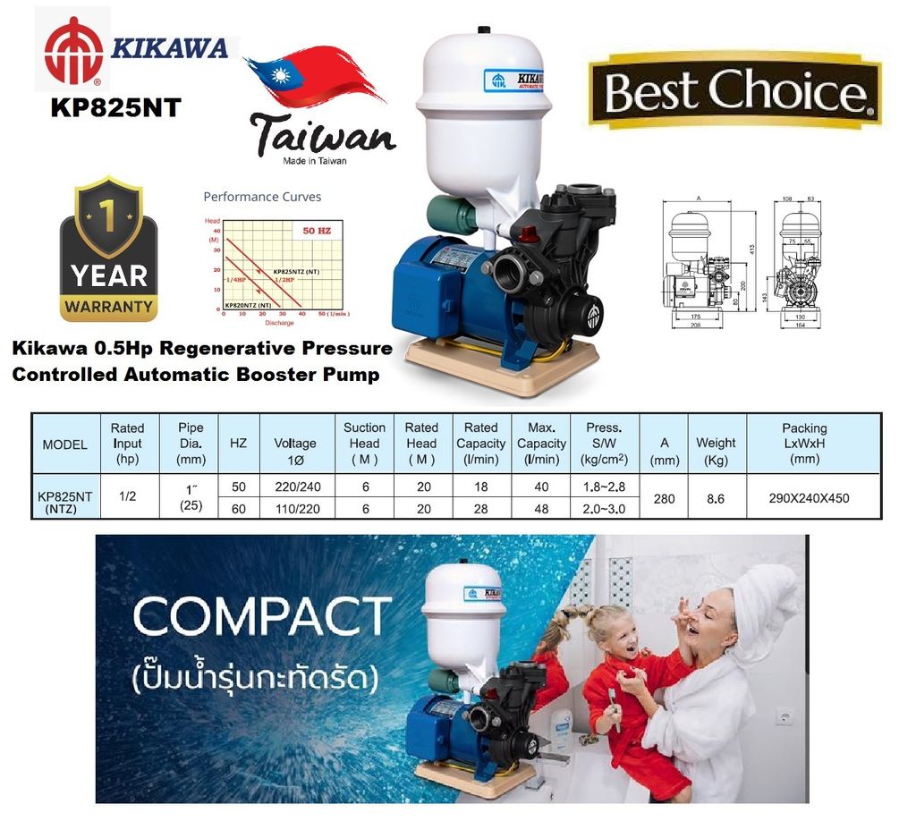 Kikawa 0.37kW / 1/2-Hp Pressure Controlled Automatic Booster Pump..