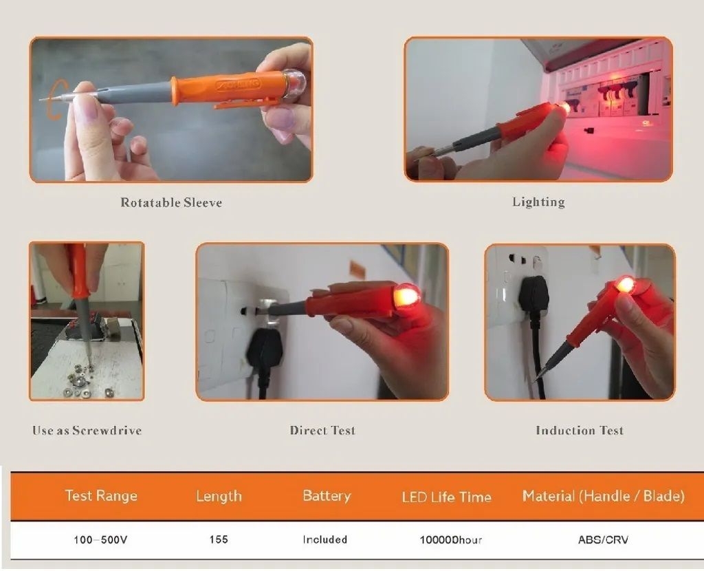 • Induction test - Move the tip near power source, LED will light up when there's live line or static